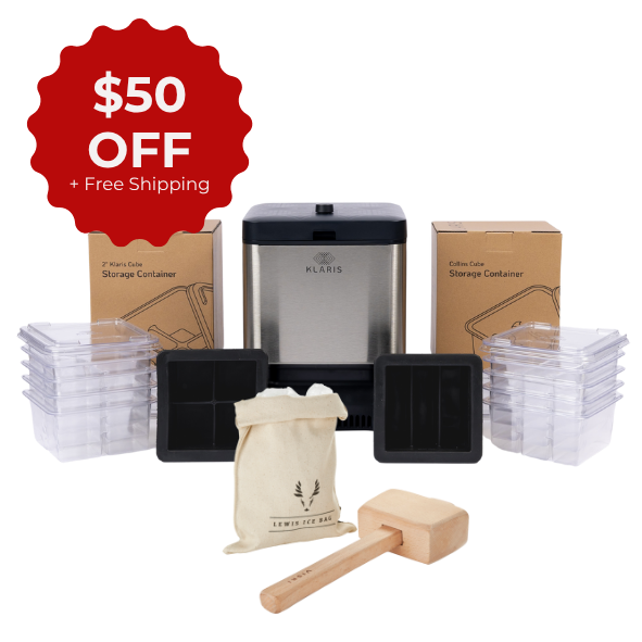 Klaris storage containers make it easy to build up a large supply of craft ice. Learn more about storage options and tempering the ice after freezer storage.